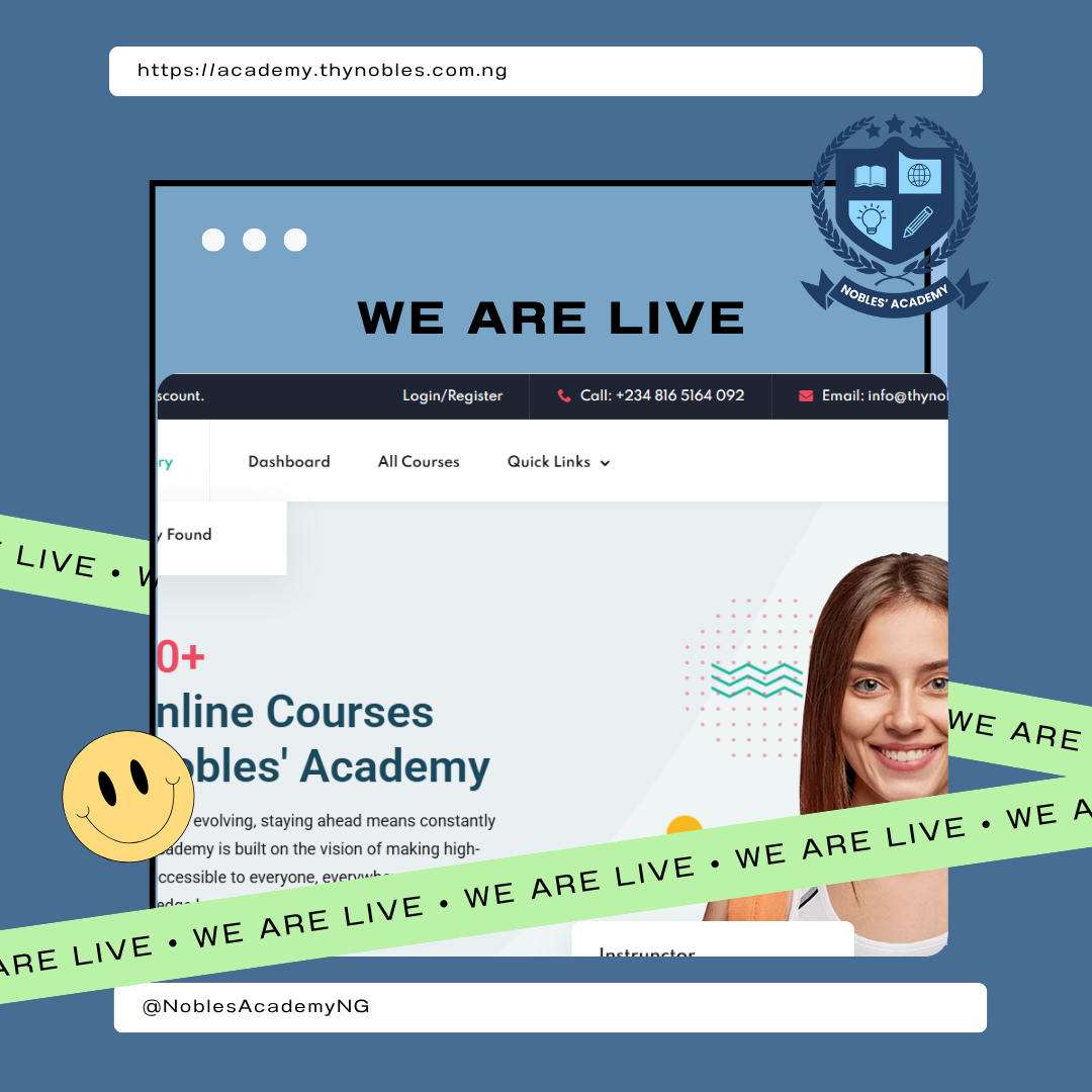 #NoblesAcademy #OnlineLearning #SkillUpNigeria #CareerGoals #EducationForAll #NowLive #Elearning #JobPlacement #ExpertInstructors #LearnAndEarn #NigerianEducation #BenueTech
